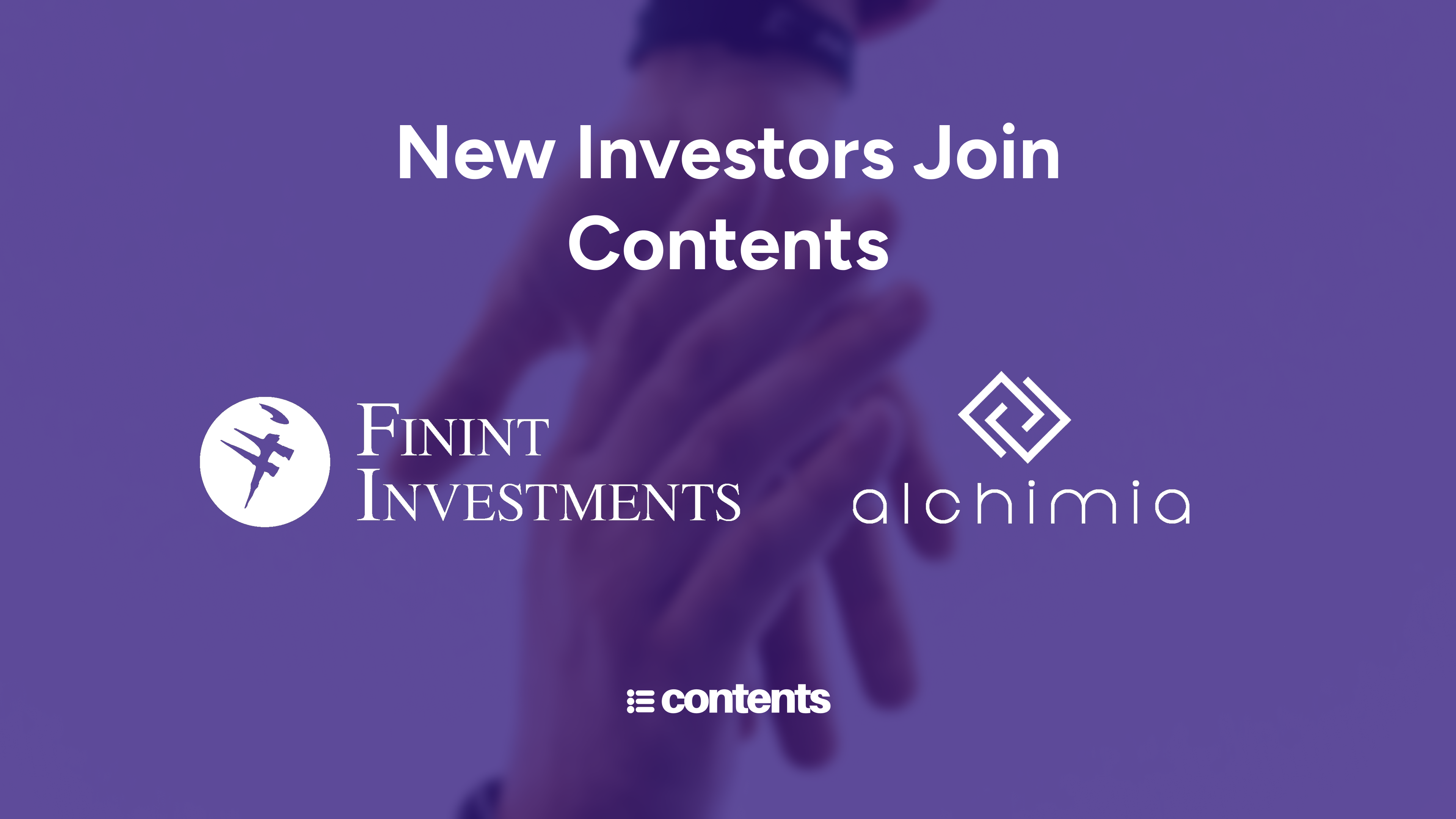Contents SpA, the global leader in AI-driven content governance, is thrilled to announce the addition of two new strategic investors: Finint SGR, the prestigious Italian private bank specialized in asset management, and Alchimia Investments, the investment company of the Barletta industrial group, known for its investments in innovative and high-growth companies.